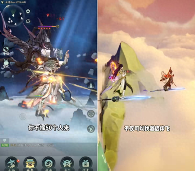 《问剑长生》以3D国风水墨画风为特色,玩家可以在游戏中体验御剑空战的快感,与各类怪兽在空中激战,玩家仿佛化身修为高深的剑仙腾空而跃,与网文剧情中的山海异兽大战三百回合。然而,不少玩家反映,当同屏人数过多时,会出现穿模和3D眩晕的现象,对手机配置要求较高。《踏风行》则是由虚幻4引擎打造,画面精美,玩家可以驾驭如修仙小说里一般的瑞兽神龙,周身华光万千,威仪赫赫,立于其首俯瞰仙界云海,澎湃豪情油然而生。